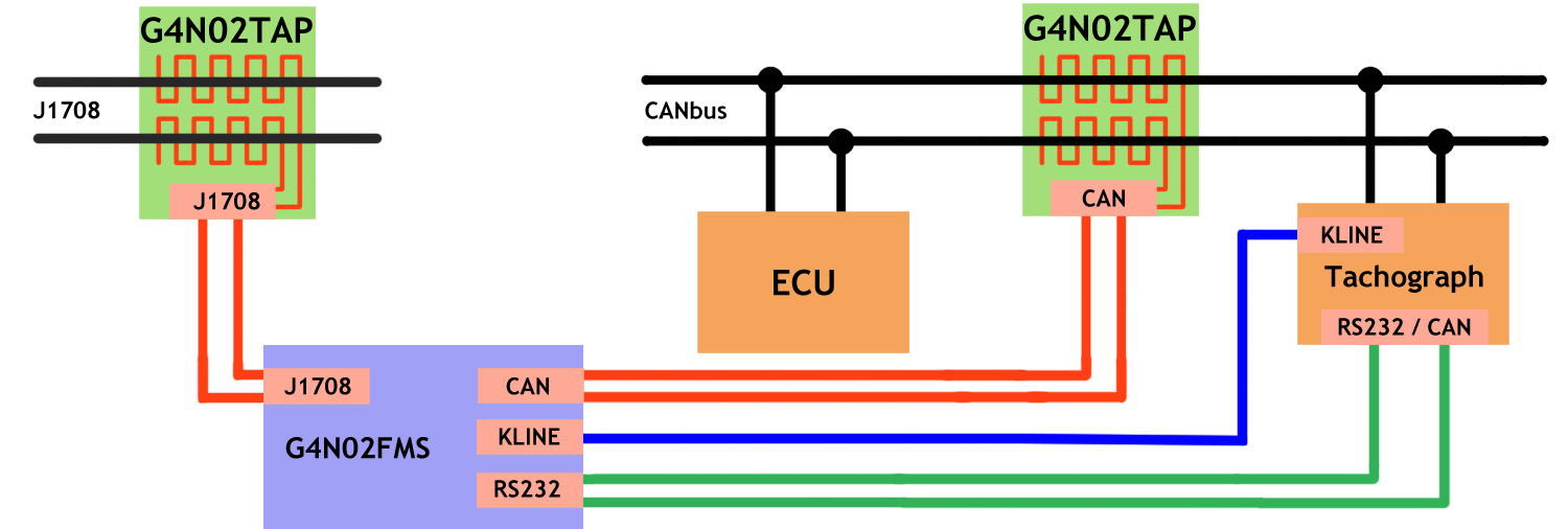 G4N02FMS is an advanced FMS interface with connectivity to vehicle data networks such as: CAN-bus J1939 & ISO11992 , J1708/J1587, OBD2, K-line, L-line, Analog and Digital Tachographs. The product is provided in several hardware versions adapted to certain vehicle types, brands and business activities.