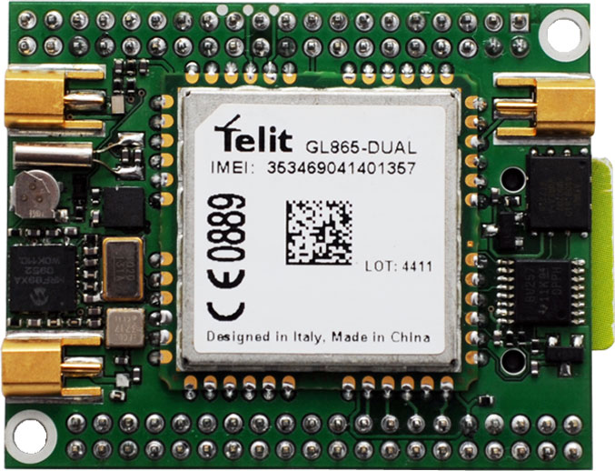 | I/O | 80 Pin dual-row, 2 mm pitch. 4 pull-down output. 4 configurable I/O. 1 Bi-stable Relay control. 1 RTS/CTS UART. 1 headset audio GSM output. 1 CAN-bus for direct intefacing with vehicles. 1 J-bus -J1708 (RS485). Aditional full pin-out configuration of the Application MCU (ADC, PWM, UART, SPI). |